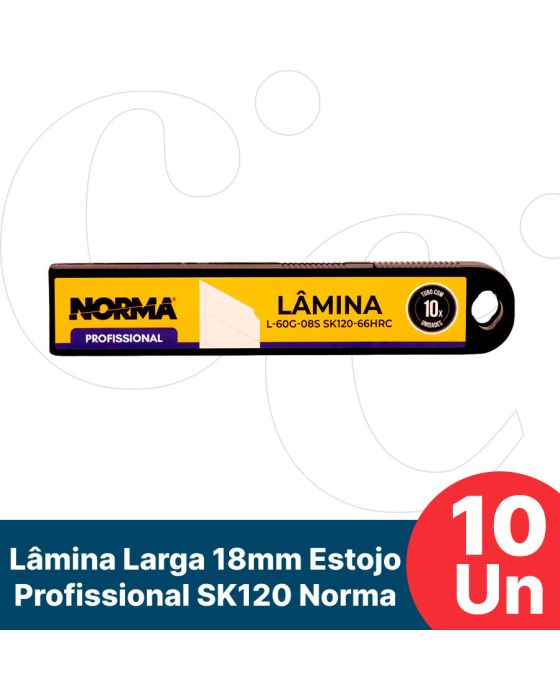Lamina Larga 18mm Estojo C/10un Profissional Sk120 Norma
