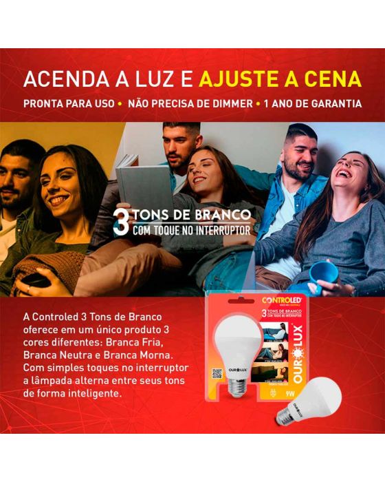 Lampada Led 9w Controled 3 Tons 20485 Ourolux Ww