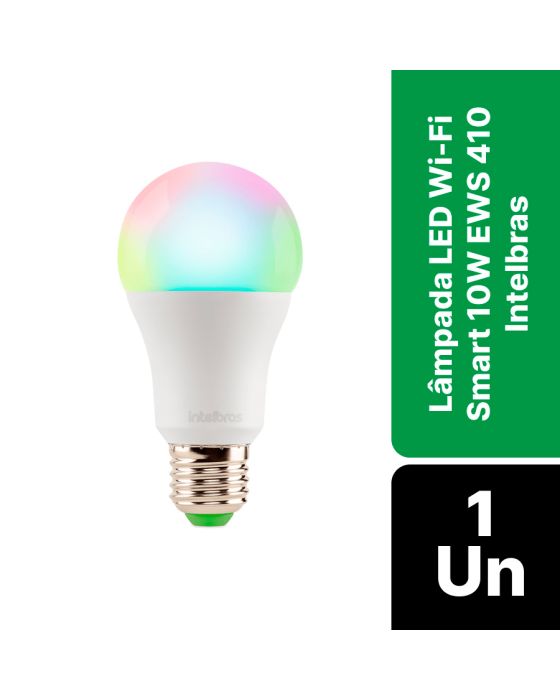 Características:Controle sua iluminação por voz ou na palma da sua mão através do aplicativo IzySmart. O EWS 410, lâmpada LED Wi-fi Smart, além de ser uma lâmpada controlada remotamente, dispõe de funções como: mudança da cor da luz, dimerização, agenda, cronômetro, cenário e música. Automações residênciais também são factíveis com esse produto, de forma a satisfazer a sua criatividade através de nosso aplicativo.Controle a intensidade da iluminação:São mais de 16 milhões de cores a sua escolha. Você pode optar por uma iluminação mais suave ou mais intensa.A instalação é simples!Basta encaixar a lâmpada no bocal padrão e configurar o aplicativo Izy Smart. Pronto, agora você tem o controle da iluminação em suas mãos.Crie cenários de acordo com sua preferência:Personalize os momentos especiais de seu dia a dia ajustando a cor da iluminação do ambiente.Detalhes:- Marca: Intelbras;- Modelo: EWS 410;- Linha: Lâmpadas LED;- Voltagem: Bivolt;- Potência: 10W;- Cor: Branco;- Cores de iluminação: branco quente, branco frio e RGB (16 milhões de cores);- Contém: 1 unidade do produto;- Conecte diretamente a seu roteador;- Acenda ou apague a luz por speaker;- Programe a iluminação pelo aplicativo Izy de acordo com a sua preferência;- Fácil instalação.Fabricado na China | Validade: Indeterminada.Ideal para:- Ideal para instalação em ambientes internos como quartos, sala, salas comerciais e demais ambientes em que se deseja ter uma iluminação diferente.Especificações gerais:- Tensão de alimentação: 100 ~ 240 Vac (bivolt automático) 50/60 Hz;- Fluxo luminoso: 806 lm;- Potência nominal: 10 W ± 10%;- Cor de iluminação: RGB (16 milhões de cores) + branco quente e frio;- Temperatura de cor: Ajustável entre 3.000K e 6.000K;- Dimerizável: Sim (através do aplicativo Izy Smart);- Formato da lâmpada: A60;- Base: E27.Conectividade:- Wi-Fi: IEEE 802.11b/g/n 2,4 GHz, com suporte à segurança WEP64/WEP128/TKIP/AES;- Wi-Fi - distância máxima do roteador: Até 20 m sem obstáculos;- Bluetooth: Versão 4.2;- App Izy Smart – sistemas compatíveis: iOS 9.0 ou superior, Android™ 4.4 ou superior.Ambiente de operação: - Temperatura de operação: 0 a 40 °C;- Vida útil: 25.000 horas.Composição:- Fabricado em Plástico, metal e componentes eletrônicos.Medidas:- Dimensões da embalagem: 6,2 x 6,2x 15,3 (CxLxA);- Peso: 62g.Garantia do fornecedor: 12 meses contra defeitos de fabricação.Conteúdo da embalagem: 1 Lâmpada LED Smart Wi-Fi e 1 manual de usuário.* As especificações podem ser alteradas sem aviso prévio ** Imagem meramente ilustrativa.