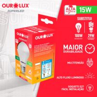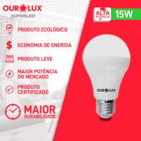 CaracterísticasIdeais para ambientes amplos residenciais e comerciais, as Lâmpadas SUPERLED ALTA POTÊNCIA mantêm a elegância e minimalismo permitindo a instalação de apenas um modelo. pois possuem o melhor da tecnologia LED, alta potência e alto fluxo luminoso.Detalhes:- Marca: Ourolux.- Modelo: Superled.- Linha: Lâmpada.- Cor da lâmpada: Branca.- Temperatura de cor: 6500K- Formato do corpo: Bulbo A60.- Base de conexão: E27.- Potência (W): 15W.- Contém: embalagem com 1 unidade do produto.- Frequência: 50/60Hz.- Tensão elétrica: 100 ~ 240V.- Vida hora: 25.000.- Feixe (Graus): 200.- Eficiência (lm/W): 100.- Composição: Polímero termoplástico, metal e componentes eletrônicos.- Garantia: 01 Ano.- Tenologia LED.- Produto certificado: INMETRO.Sugestão de uso: - Utilizar em ambientes cobertos.* As especificações podem ser alteradas sem aviso prévio ** Imagem meramente ilustrativa.