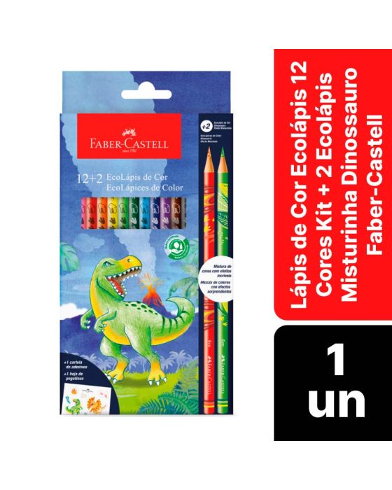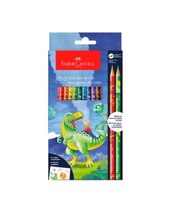 Lapis De Cor Ecolapis 12 Cores + 2 Ecolapis Misturinha Dinossauro Faber-castell