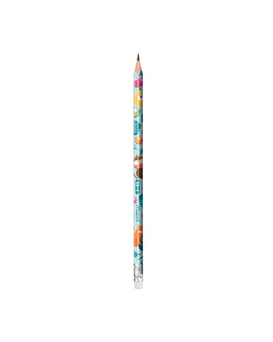 Características:Um lápis de grafite sem madeira com borracha na ponta, adequado para todos os usos! Como a Maped está cada vez mais preocupada com o meio ambiente, este grafite é feito com 40,9% de materiais reciclados. Sua ponta com borracha facilita a correção rápida de erros. Além disso, seu corpo triangular torna o lápis mais fácil de segurar.Detalhes:- Marca: Maped;- Modelo: Jungle Fever;- Referência: 851819;- Linha: Lápis Grafite- Cor: estampado;- Cor grafite: Preto;- Contém: 1 blister com duas unidades do produto e um suporte para lápis;- Formato: Redondo;- Graduação: HB=2;- Possui borracha na ponta do lápis;- Produto recomendado por professores;- Produto ecológico: 40,9% feito de materiais reciclados;- Sem lascas, lápis feito em resina.Fabricado na China. | Validade: Indeterminado.Composição: - Fabricado em Poliestireno e lâmina de aço.Medidas:- Dimensões do produto: 18,7 x 0,7 x 0,7cm (CxLxA);- Dimensões da embalagem: 23,1 x 8,9 x 1,5cm (CxLxA);- Peso: 0,08g.Produto certificado pelo INMETRO 005060/2019 OCP 0061.ATENÇÃO! NÃO RECOMENDÁVEL PARA CRIANÇAS DE ATÉ 4(QUATRO) ANOS, POR CONTER PARTE(S) PEQUENA(S) QUE PODEM SER ENGOLIDA(S) OU ASPIRADA(S) E BORDA(S) CORTANTE(S) E FUNCIONAL(IS). CRIANÇAS ATÉ 8(OITO) ANOS SOMENTE DEVEM UTILIZAR SOB A SUPERVISÃO DE UM ADULTO.* As especificações podem ser alteradas sem aviso prévio ** Imagem meramente ilustrativa.