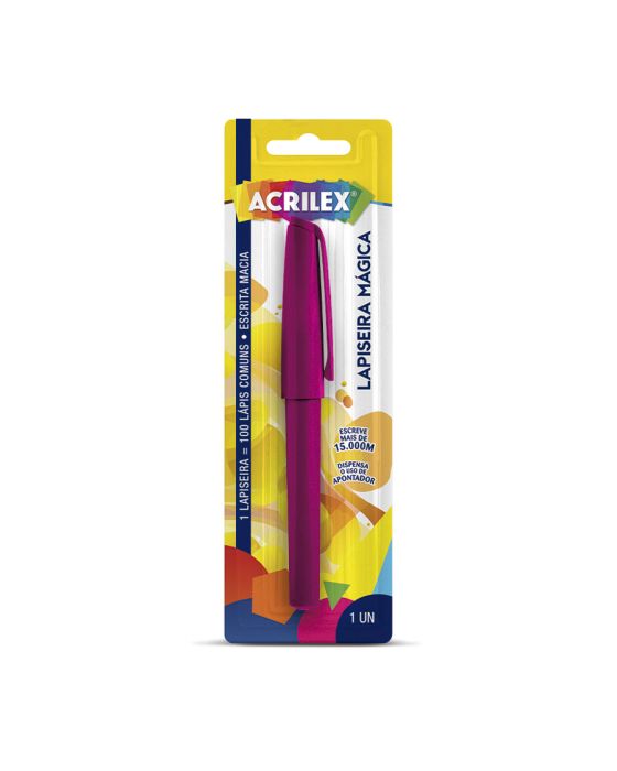 Características:A Lapiseira Mágica Acrilex é a escolha perfeita para quem busca uma ferramenta de precisão para seus trabalhos artísticos e artesanais. Ela é duradoura, sendo capaz de escrever 15 mil metros, sendo ideal para traços finos e detalhados, permitindo que você crie desenhos e ilustrações de alta qualidade. Além disso, ela é fácil de usar e possui um design ergonômico que proporciona conforto durante o uso prolongado.Detalhes:- Marca: Acrilex;- Modelo: Lapiseira Mágica;- Referência: 06411;- Linha: Lapiseiras;- Cor: Rosa;- Contém: 1 unidade do produto;- Cores Sortidas;- Escreve mais de 15.000M;- 1 Lapiseira = 100 La´pis comum;- Escrita macia;- Dispensa uso de apontador.* As especificações podem ser alteradas sem aviso prévio ** Imagem meramente ilustrativa.
