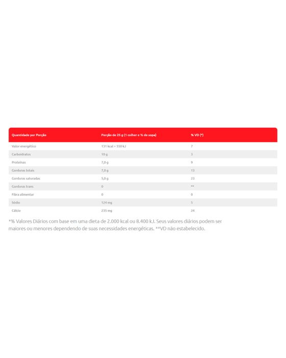 Caracteristicas:Experimente Leite em Pó Piracanjuba Integral Instantâneo 400g a praticidade do Leite em Pó e todos os nutrientes do leite tradicional!Detalhes:- Marca: Piracanjuba.- Linha: Leite em Pó Instantâneo.- Tipo: Integral.- Volume/Peso: 400g.- Fonte de Cálcio.- Contém Lactose- Não Contém Glúten.Indústria Brasileira.Modo de preparo:- Coloque o Leite em Pó Integral Instantâneo Piracanjuba em meio copo ou meia jarra de água filtrada ou fervida, misture até a total dissolução e complete até a medida desejada.- Para 200ml de leite (um copo): 1 colher e 1/2 de sopa (25g).- Para 1L de leite: 8 colheres de sopa (130g).- Rendimento: 16 copos.Conservação: - Não necessita refrigeração.- Mantenha em local seco e arejado.- Após aberto, consumir em até 30 dias.Ingredientes: - Leite integral e emulsificante lecitina de soja.ALÉRGICOS: CONTÉM LEITE, CONTÉM LACTOSE.NÃO CONTÉM GLÚTEN.AVISO: Este produto não deve ser usado para alimentar crianças menores de 1 (um) ano de idade, exceto por indicação expressa de médico ou nutricionista. O aleitamento materno evita infecções e alergias e é recomendado até os 2 (dois) anos de idade ou mais.* As especificações podem ser alteradas sem aviso prévio ** Imagem meramente ilustrativa.