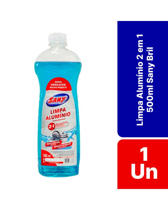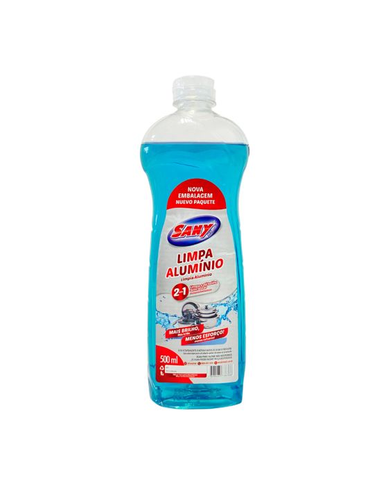 Características:O Limpa Alumínio Sany Mix é um produto versátil de uso diário. Fórmula desenvolvida exclusivamente para limpar e dar brilho aos utensílios de alumínio.Detalhes:- Marca: Sany Bril;- Modelo: Limpa Alumínio 2 em 1;- Linha: Limpadores;- Cor líquido: Azul;- Volume/Peso: 500ml;- Contém: 1 unidade do produto;- Nova embalagem;- 2 em 1: Limpa e dá brilho sem arear;- Mais Brilho, menos esforço.Ideal para:- Ideal para grelhas e panelas de alumínio;- Não recomendável para mesa de fogões de Inox.Modo de uso: - Aplicar o Limpa Alumínio Sany Bril com uma esponja de alumínio e enxaguar em seguida;- Não deixar o produto secar sobre o alumínio;- Não aplique o produto diretamente sobre o alumínio;- Para obter brilho sem embaçar, lave em seguida com água e sabão ou detergente neutro.Conservação:- Armazenar em lugar seco ao abrigo da luz solar direta e calor;- Mantenha o produto na embalagem original;- Não reutilizar as embalagens vazias.Composição:- Aditivo, Alcalinizante, Espessante, Essência, Corante, Conservante e veículo, Princípio ativo: Ácido dodecilbenzeno Sulfônico.Medidas:- Dimensões: 7,5 x 5 x 22cm (CxLxA).CONSERVE FORA DO ALCANCE DE CRIANÇAS E DOS ANIMAIS DOMESTICOS.* As especificações podem ser alteradas sem aviso prévio ** Imagem meramente ilustrativa.