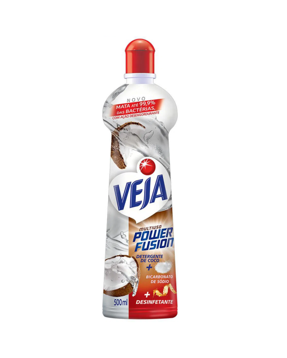 Caracteristicas:A linha Veja Multiuso Power Fusion é focada na limpeza do dia a dia de sua casa e vai te ajudar a eliminar diversas sujeiras e resíduos com praticidade. Conheça os produtos e ofereça o melhor bem-estar para sua família.Especificações- Uso direto- Embalagem squeeze- Fragrância: Coco- Conteúdo: 500ml - Possui ação desengordurante e mata 99, 9% do vírus da e das bactérias¹ - Multiuso power fusion + detergente de coco+ bicarbonato de sódio + desinfetante - Sua poderosa fórmula combina a eficiência de veja multiuso + ação desengordurante + limpeza e brilho² em uma só passada + desinfecção e proteção contra bactérias¹ - Ideal para tirar sujeiras de fuligem, gordura, poeira, batom, base facial, risco de lápis, molho de tomate, café, caneta hidrocor, giz de cera, caneta permanente, graxa, marca de sapato - Ideal para pias de cozinha e banheiro, geladeiras, fogões, máquinas de lavar, azulejos, fórmica, paredes, vidro, cerâmica, espelho, plásticos, acrílicos, ladrilhos, pisos e superfícies laváveis - Multiuso de todos os temposAviso sobre o produto: Manter fora do alcance de crianças e dos animais domésticos, não ingerir, evite contato com os olhos. * As especificações podem ser alteradas sem aviso prévio ** Imagem meramente ilustrativa
