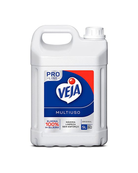 Caracteristicas:O novo Veja Multiuso Pro Line elimina 100% da sujeira, garantindo máxima limpeza sem esforço.Resultados imbatíveis! Ideal para a limpeza do dia a dia da sua casa: cozinhas, banheiros, pias, azulejos, plásticos e esmaltados, fogões e superfícies laváveis, removendo sujeiras como gorduras, fuligem, poeira, marcas de dedos e risco de lápis.- Embalagem com 5L- Elimina 100% da sujeira- Máxima limpeza sem esforço- Onde usar: pias de cozinha, geladeiras, fogões, máquinas de lavar e pias de banheiro.Modo de uso- Aplique o produto nas superfícies a serem limpas e, em seguida, passe um pano ou esponja macia. Para sujeiras mais difíceis, deixar o produto agir por alguns instantes. Para superfícies verticais, recomenda-se aplicar o produto diretamente no pano.- Recomendação: testar em uma pequena área escondida antes de usar.- Atenção: para painéis de fogões, limpar com a superfície fria. Não usar em superfícies de madeira natural. Para superfícies de alumínio, mármore e superfícies pintadas/esmaltadas e com serigrafia, limpar imediatamente após a aplicação.* As especificações podem ser alteradas sem aviso prévio ** Imagem meramente ilustrativa