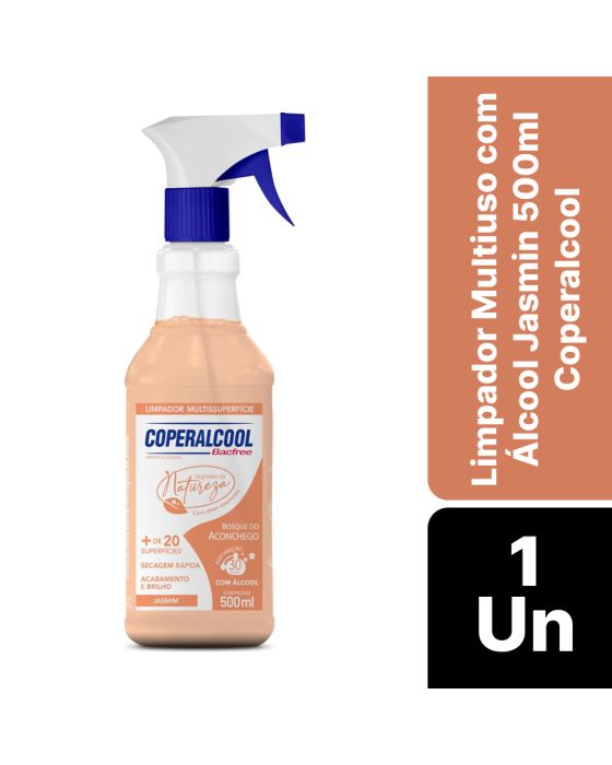 Características:O equilíbrio perfeito entre limpeza e bem-estar. O Limpador Multissuperfície Segredos da Natureza é o primeiro produto à base de álcool no mercado que foi desenvolvido para ser aplicado em + de 20 superfícies.A fragrância de Jasmim cria um ambiente aconchegante.Detalhes:- Marca: Coperalcool;- Modelo: Backfree Segredos da Natureza Bosque do Aconchego;- Linha: Limpadores;- Tipo: Spray;- Fragrância: Jasmin;- Volume: 500ml;- Cor: Laranja;- Contém: 1 unidade do produto;- 5 em 1: Limpa, Perfuma, Dá Brilho, Desengordura e Tira Limo;- Mais de 20 superfícies podem ser limpas;- Até 30 horas de perfumação;- Com álcool;- Com óleos essenciais;- Secagem rápida;- Acabamento e brilho.Indústria Brasileira. | Validade: 24 meses após a data de fabricação impressa na embalagem.Ideal para:- Ideal para usar em Azulejo, Alumínio, Cerâmica, Porcelanato, Vidro, Laminado Vinílico, Madeira, Mármore, Fórmica, Tecido, Metal, Plástico, Fogão, Geladeira, Micro-ondas, Forno Elétrico, Eletrodomésticos, Superfícies enceradas e laqueadas e espelhos.Modo de usar:- Para limpeza mais profunda: Aplique o produto puro na superfície a ser limpa e esfregue com um pano ou esponja, deixe agir por cerca de um minuto e remova a sujeira com um pano úmido ou enxágue, se necessário.- Para limpeza mais superficial ou de pisos e azulejos: Aplique o produto sobre a superfície a ser limpa e espalhe com um pano ou flanela, removendo a sujeira, em seguida para finalização e brilho, passe um pano seco , aplique novamente o produto e espalhe com um pano ou flanela.Recomendações:- Teste em uma pequena área não visível antes de usa-lo pela primeira vez;- Para limpeza de superfícies grandes, aplique por partes e realize o enxágue sempre que necessário.Conservação:- Conservar em local em local seguro, coberto, ventilado e ao abrigo do sol e do calor;- Não derramar sobre o fogo, manter afastado do fogo.Composição:- Água, Álcool Etílico, Tensoativo Aniônico, Tensoativo Catiônico, Emulsificante, Sequestrante, Conservante e Fragrância.Medidas:- Dimensões do produto: 7 x 9,5 x 24cm (CxLxA);- Peso: 500g.ATENÇÃO! MANTENHA FORA DO ALCANCE DAS CRIANÇAS E DOS ANIMAIS DOMÉSTICOS.* As especificações podem ser alteradas sem aviso prévio ** Imagem meramente ilustrativa.