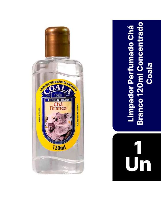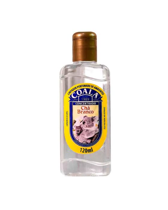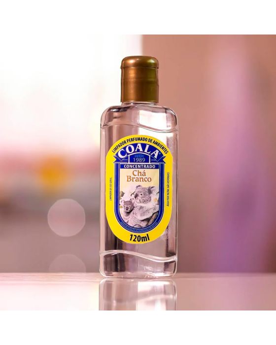 Características:Com Coala Essências Limpador Perfumado de Ambientes Chá Branco, seu ambiente vai ficar limpo e com um aroma incrível!Detalhes:- Marca: Coala.- Modelo: Limpador Perfumado;- Linha: Limpadores;- Tipo: Uso geral;- Fragrância: Chá Branco;- Volume/Peso: 120ml / 200g;- Contém: 1 unidade do produto;- Rendimento: 8 gotas rende 1 litro;- Garante a sensação prolongada de limpeza e bem-estar;- Tem perfume duradouro;- Fragrância agradável.Indústria Brasileira. | Validade: 24 meses após a data de fabricação impressa na embalagem.Onde usar:- Pode ser usado em ambientes como quartos, salas de estar/ jantar, cozinhas, banheiros, lavabos, escritórios, salas de reunião entre outras.Modo de usar:- Diluir 8 gotas da Essência Limpadora concentrada em 1 litro de água e com o pano úmido e passar sobre a superfície desejada.Precauções:- Testar o produto em uma pequena área antes do uso, para evitar possíveis manchas.- Manter o produto em sua embalagem original, sempre fechada;- Não reutilize a embalagem.Conservação:- Guardar sob abrigo da luz do sol, pois o calor excessivo pode danificar o produto e sua eficácia.Composição:- Nonil fenol etoxilado 9,5 EO, solvente, fragrância, corante, sequestrante e veículo.Medidas:- Dimensões do produto: 5,5 x 2,7 x 15,2cm (CxLxA);- Peso: 200g.ATENÇÃO! MANTENHA O PRODUTO FORA DO ALCANCE DE CRIANÇAS E ANIMAIS DE ESTIMAÇÃO.* As especificações podem ser alteradas sem aviso prévio ** Imagem meramente ilustrativa