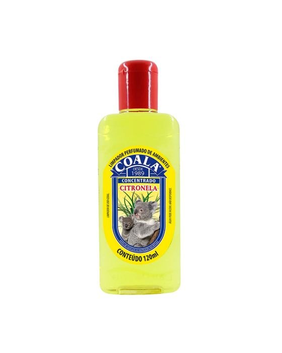 Caracteristicas:Com Coala Essências Limpador Perfumado de Ambientes Citronela, seu ambiente vai ficar limpo e com um aroma incrível!Detalhes:- Marca: Coala.- Modelo: Limpador Perfumado.- Linha: Limpadores.- Fragrância: Citronela.- Quantidade: 120ml.- Contém:- Medidas da embalagem: 6,6 × 4 × 16cm.- Peso: 200g- Rendimento: 8 gotas rende 1 litro.- Garante a sensação prolongada de limpeza e bem-estar.- Tem perfume duradouro.- Fragrância agradável.- Validade: 24 meses após a data de fabricação.Onde usar:- Pode ser usado em ambientes como quartos, salas de estar/ jantar, cozinhas, banheiros, lavabos, escritórios, salas de reunião entre outras.Modo de usar:- Diluir 8 gotas da Essência Limpadora concentrada em 1 litro de água e com o pano úmido e passar sobre a superfície desejada.Precauções: - Testar o produto em uma pequena área antes do uso, para evitar possíveis manchas. - Manter o produto em sua embalagem original, sempre fechada. Conservação: - Guardar sob abrigo da luz do sol, pois o calor excessivo pode danificar o produto e sua eficácia. Composição:- Nonilfenol etoxilado 9,5 MO, solvente, estabilizante, fragrância, corante, conservante e água.ATENÇÃO! MANTENHA O PRODUTO FORA DO ALCANCE DE CRIANÇAS E ANIMAIS DE ESTIMAÇÃO.* As especificações podem ser alteradas sem aviso prévio ** Imagem meramente ilustrativa