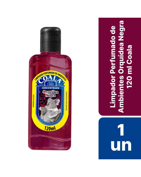 Caracteristicas:Com Coala Essências Limpador Perfumado de Ambientes Orquídea Negra, seu ambiente vai ficar limpo e com um aroma incrível.Detalhes:- Marca: Coala;- Modelo: Limpador Perfumado;- Linha: Limpadores;- Fragrância: Orquídea Negra;- Volume/Peso: 120ml / 200g;- Contém: 1 unidade do produto;- Medidas da embalagem: 6,6 x 4 x 16cm;- Rendimento: 8 gotas rende 1 litro;- Garante a sensação prolongada de limpeza e bem-estar;- Tem perfume duradouro;- Fragrância agradável.Validade: 24 meses após a data de fabricação.Onde usar:- Pode ser usado em ambientes como quartos, salas de estar/ jantar, cozinhas, banheiros, lavabos, escritórios, salas de reunião entre outras.Modo de usar:- Diluir 8 gotas da Essência Limpadora concentrada em 1 litro de água e com o pano úmido e passar sobre a superfície desejada.Precauções:- Testar o produto em uma pequena área antes do uso, para evitar possíveis manchas;- Manter o produto em sua embalagem original, sempre fechada;- Além disso, é importante manter fora do alcance de crianças e animais de estimação.Conservação:- Guardar sob abrigo da luz do sol, pois o calor excessivo pode danificar o produto e sua eficácia.Composição:- Nonil fenol etoxilado 9,5 MO, solvente, estabilizante, fragrância, corante, conservante e água.ATENÇÃO! MANTENHA O PRODUTO FORA DO ALCANCE DE CRIANÇAS E ANIMAIS DE ESTIMAÇÃO.* As especificações podem ser alteradas sem aviso prévio ** Imagem meramente ilustrativa.