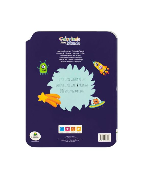 Características:Divirta-se colorindo este incrível livro com 72 páginas e 100 adesivos maneiros!- É relaxante, pois promove o bem-estar ao se realizar uma atividade prazerosa, como colorir.- Desenvolve a concentração, as capacidades psicomotoras, desperta a criatividade e a imaginação.- Reduz o estresse, a ansiedade e ajuda a aumentar a autoestima e a autoconfiança.- Com 72 páginas de colorir.- Com 100 adesivos incríveis para tornar a hora de colorir ainda mais divertida.- Ilustrações divertidas e com nível de detalhamento ideal para a faixa etária sugerida.- Estimula coordenação motora, estimulo visual e desperta a criatividade- Dimesões: 21,5x27,7 cm- Quantidade de Páginas: 72- Faixa Etária: a partir de 3 anos- Acabamento: Lombada quadrada, faca especial, com hot stamping e 100 adesivos* As especificações podem ser alteradas sem aviso prévio ** Imagem meramente ilustrativa