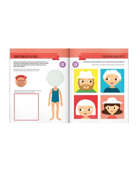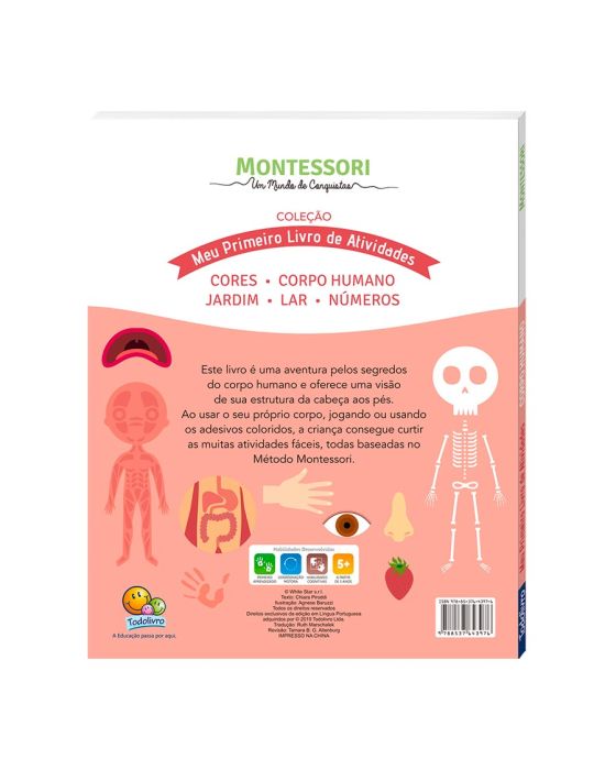 Caracteristicas:Este livro é uma aventura pelos segredos do corpo humano e oferece uma visão de sua estrutura da cabeça aos pés. Ao usar o seu próprio corpo, jogando ou usando os adesivos coloridos, a criança consegue curtir as muitas atividadesfáceis, todas baseadas no Método Montessori.- Habilidades desenvolvidas PRIMEIRO APRENDIZADO COORDENAÇÃO MOTORA HABILIDADES COGNITIVAS Descrição do Livro- Formato: 21,5x27 cm - Páginas: 40- Faixa Etária: A partir de 5 anos- Acabamento: Cartonado com capa dura almofadada* As especificações podem ser alteradas sem aviso prévio ** Imagem meramente ilustrativa