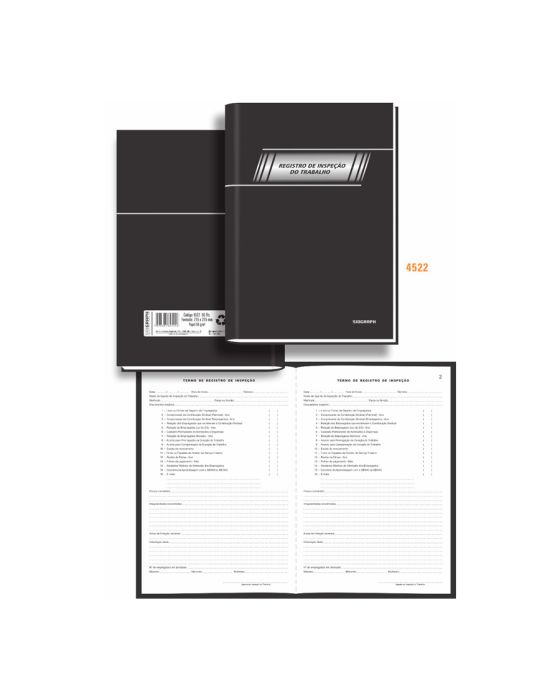 Caracteristicas:- Capa dura- Formato: 215 x 315 mm - 50 folhas numeradas- Ref. 4522- Conteúdo da folha: - Data - Hora do início - Término - Nome do agente da inspeção do trabalho - Matrícula - Cargo ou função - Documentos exigidos: - Livro ou fichas de registo de empregados - Comprovante da contribuição sindical (patronal) - Ano - Comprovante da contribuiçao sindical (empregados) - Ano - Relação dos Empregados que recolheram a Contribuição Sindical - Relação de Empregados (Lei de 2/3) - Ano - Cadastro Permanente de Admissões e Dispensas - Relação de Empregados Menores - Ano - Acordo para Prorrogação da Duração do Trabalho - Acordo para Compensação da Duração do Trabalho - Escala de revezamento - Ficha ou Papeleta de Horário de Serviço Externo - Recibo de Férias - Ano - Folhas de pagamento - Mês - Atestados Médicos de Admissão dos Empregados - Convênio da Aprendizagem com o SENAI ou SENAC - E mais: - Prazos concedido - Irregularidades encontradas - Autos de infração lavrados - Orientação dada - N° de empregados em atividade - Maiores - Menores - Mulheres - Espaço para assinatura do agente da inspeção do trabalho* As especificações podem ser alteradas sem aviso prévio ** Imagem meramente ilustrativa