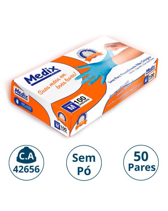 Luva Nitrilica P/procedimento S/po Azul Cx C/50 Pares M Medix (ca 42656)