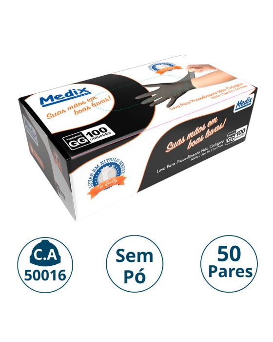 Luva Nitrilica P/procedimento S/po Preta Cx C/50 Pares Gg Medix (ca 50016)