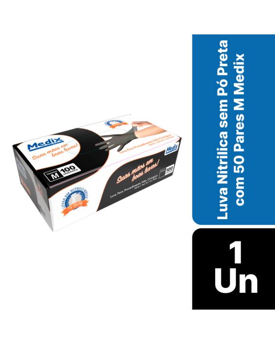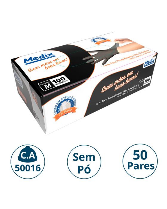 Luva Nitrilica P/procedimento S/po Preta Cx C/50 Pares M Medix (ca 50016)