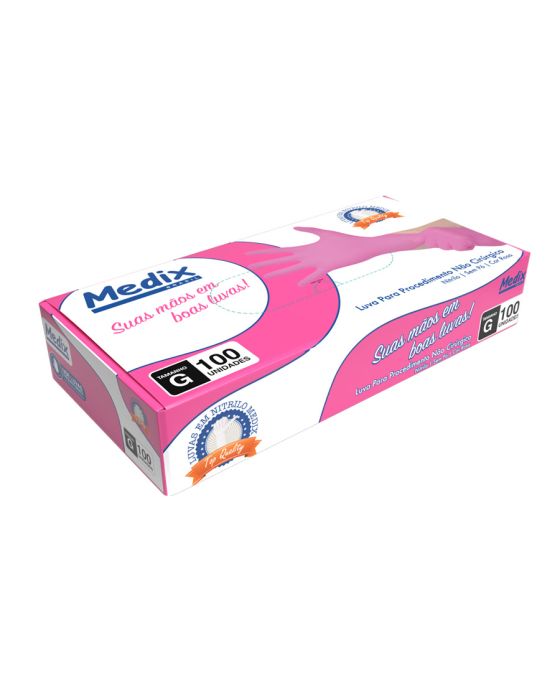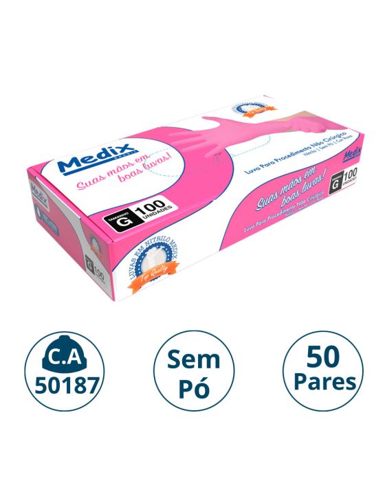 Luva Nitrilica P/procedimento S/po Rosa Cx C/50 Pares G Medix (ca 50187)