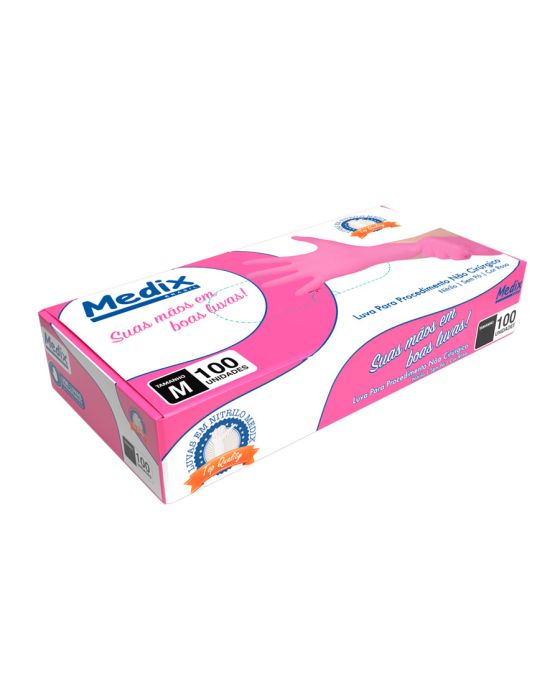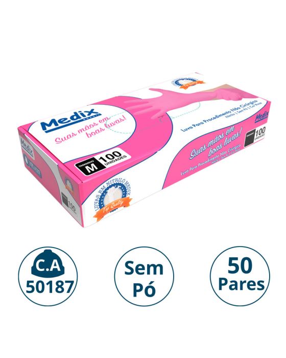 Luva Nitrilica P/procedimento S/po Rosa Cx C/50 Pares M Medix (ca 50187)