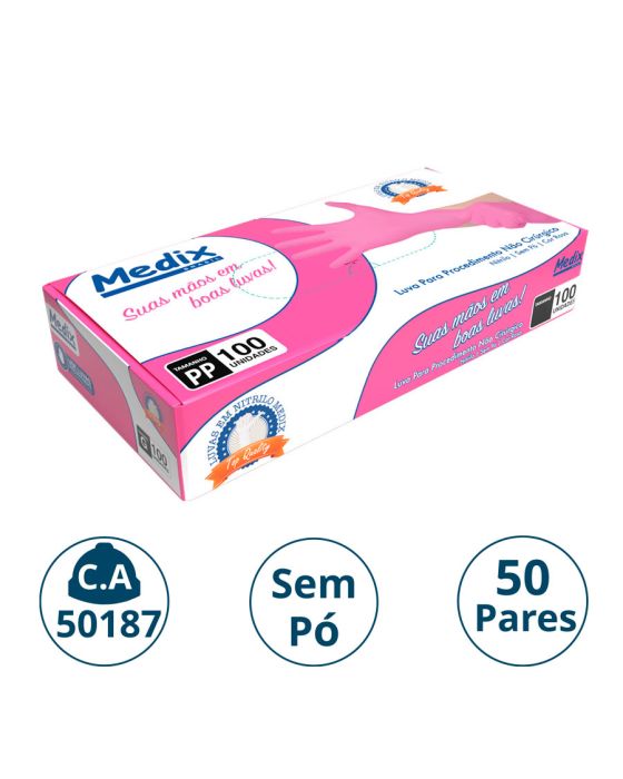 Luva Nitrilica P/procedimento S/po Rosa Cx C/50 Pares Pp Medix (ca 50187)