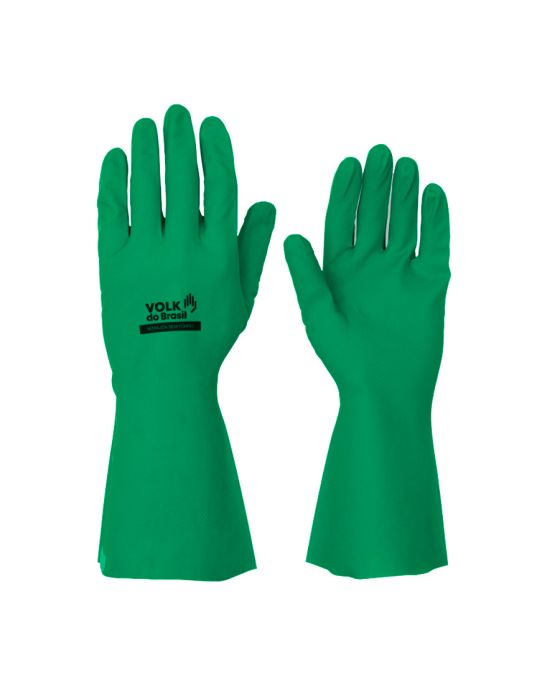Características:Luva de segurança confeccionada em nitrila, relevo antiderrapante na face palmar e ponta dos dedos.Detalhes:- Marca: Volk;- Modelo: Nitrílica sem forro;- Referência: 10.65.010.03;- Linha: Luvas de proteção individual;- Cor: Verde;- Tamanho: EG (10);- CA: 16.314 (validade 10/12/2025);- Contém: 1 par de luvas;- Comprimento: 30cm;- Uso: Reutilizável;- Formato: Anatômico;- Acabamento interno: Clorinado;- Punho: Reto;- Grip: Diamante Antiderrapante;- Sem forro;- Excelente Opção para atender a RDC 26;- Proteção Química e elasticidade moderada.Fabricado no Sri Lanka. | Validade: 5 anos a partir da data de fabricação.Ideal para:- Indicado para trabalhos gerais, leves e médios, protegendo o trabalhador contra agentes químicos, podendo ser utilizada nos setores operacionais de indústrias automotivas, alimentícias frigorífica (aves, pescas e bovíno, higiene e limpeza, saneamento, metalmecânica, naval, construção civil, uso domésticos e outras.Vantagens e Benefícios- 100% Nitrílica: Livre de proteínas do látex;- Antiderrapante: Em formato diamante, permite o bom fluxo de líquidos evitando que os mesmos acumulem na superfície da luva para uma ótima aderência;- Formato Anatômico: Redução da fadiga muscular;- Punho Reto: Permite maior ventilação, além disso, evita que materiais fiquem impregnados no punho da luva;- Redução de Custos: Luvas laváveis e reutilizáveis. Aumenta consideravelmente o ciclo de vida da luva e reduz os custos da empresa.Geral:- Resistência Mecânica: EN388 – Desempenho 3101X- Resistência Química: EN374 – Desempenho A1C1J5K6N2O5P6T6- ISO 374-5 – Aprovado para proteção contra fungos e bactérias.- Produtos Químicos Adicionais: Hipoclorito de sódio 13%: 6 / Cloreto de Benzalcanio 50%: 6 / Ácido Peracético 0,2%: 6.Orientações:- Utilize o EPI apenas para os riscos indicados;- Verifique a integridade e condições das luvas, atentando-se para presença de furos e/ou rasgos, sujidade excessiva;- Higienize as mãos antes de usar o EPI;- Evite o uso de anéis, pulseiras e/o adornos evitando danos ao EPI;- Após a utilização lavar as luvas com detergente neutro;- Secar a sombra com os pulsos para baixo em temperatura ou em secadora (máximo 40°C);- Utilizar as luvas ao manusear máquinas e/ou equipamentos, redobre a atenção;- Não utilizar para manipulação de líquidos quentes e na presença de chamas (fogo).Composição:- Fabricada em Nitrila.Medidas:- Dimensões da embalagem: 39,5 x 14,3 x 1,5cm (CxLxA);- Peso: 62g.* As especificações podem ser alteradas sem aviso prévio ** Imagem meramente ilustrativa.