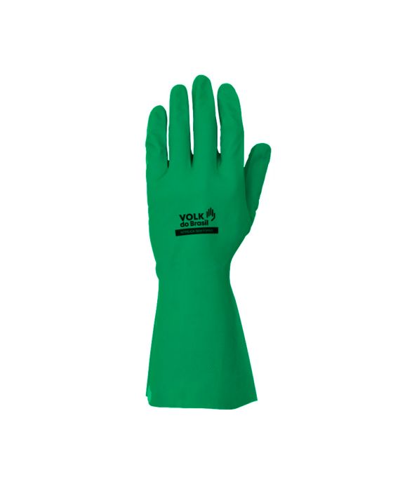 Características:Luva de segurança confeccionada em nitrila, relevo antiderrapante na face palmar e ponta dos dedos.Detalhes:- Marca: Volk;- Modelo: Nitrílica sem forro;- Referência: 10.65.010.03;- Linha: Luvas de proteção individual;- Cor: Verde;- Tamanho: M (8);- CA: 16.314 (validade 10/12/2025);- Contém: 1 par de luvas;- Comprimento: 30cm;- Uso: Reutilizável;- Formato: Anatômico;- Acabamento interno: Clorinado;- Punho: Reto;- Grip: Diamante Antiderrapante;- Sem forro;- Excelente Opção para atender a RDC 26;- Proteção Química e elasticidade moderada.Fabricado no Sri Lanka. | Validade: 5 anos a partir da data de fabricação.Ideal para:- Indicado para trabalhos gerais, leves e médios, protegendo o trabalhador contra agentes químicos, podendo ser utilizada nos setores operacionais de indústrias automotivas, alimentícias frigorífica (aves, pescas e bovíno, higiene e limpeza, saneamento, metalmecânica, naval, construção civil, uso domésticos e outras.Vantagens e Benefícios- 100% Nitrílica: Livre de proteínas do látex;- Antiderrapante: Em formato diamante, permite o bom fluxo de líquidos evitando que os mesmos acumulem na superfície da luva para uma ótima aderência;- Formato Anatômico: Redução da fadiga muscular;- Punho Reto: Permite maior ventilação, além disso, evita que materiais fiquem impregnados no punho da luva;- Redução de Custos: Luvas laváveis e reutilizáveis. Aumenta consideravelmente o ciclo de vida da luva e reduz os custos da empresa.Geral:- Resistência Mecânica: EN388 – Desempenho 3101X- Resistência Química: EN374 – Desempenho A1C1J5K6N2O5P6T6- ISO 374-5 – Aprovado para proteção contra fungos e bactérias.- Produtos Químicos Adicionais: Hipoclorito de sódio 13%: 6 / Cloreto de Benzalcanio 50%: 6 / Ácido Peracético 0,2%: 6.Orientações:- Utilize o EPI apenas para os riscos indicados;- Verifique a integridade e condições das luvas, atentando-se para presença de furos e/ou rasgos, sujidade excessiva;- Higienize as mãos antes de usar o EPI;- Evite o uso de anéis, pulseiras e/o adornos evitando danos ao EPI;- Após a utilização lavar as luvas com detergente neutro;- Secar a sombra com os pulsos para baixo em temperatura ou em secadora (máximo 40°C);- Utilizar as luvas ao manusear máquinas e/ou equipamentos, redobre a atenção;- Não utilizar para manipulação de líquidos quentes e na presença de chamas (fogo).Composição:- Fabricada em Nitrila.Medidas:- Dimensões da embalagem: 39,6 x 14 x 1,5cm (CxLxA);- Peso: 52g.* As especificações podem ser alteradas sem aviso prévio ** Imagem meramente ilustrativa.
