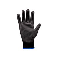 Caracteristicas:Luva de segurança tricotada em nylon. Palma, face palmar dos dedos e ponta dos dedos com revestimento em poliuretano, punho com elastano.- Sensibilidade tátil- Antiestática- Palma antiderrapante- Possui respirabilidade- Conforto anatomico- Protege objetos contra oxidação- Resistencia termica 100°- Ideal para ambientes com maior sujidade- Tamanho: G- Cor: PretoAplicação: Este modelo de luva pode ser utilizado em diversos segmentos, tais como: Logística, transportes, expedição, carga e descarga de materiais, indústria metal-mecânica, industria da mineração, indústria automotiva / montadoras, autocenters, componentes eletrônicos, montagem e manuseio de chicotes elétricos não energizados, linhas de montagem, manutenção predial e industrial, serviços de hotelaria, indústria florestal, indústria da aviação, indústria termoplástica, agricultura, comércio, colheita, indústria da cerâmica, entre outros.Recomendações gerais- Instruções de uso: - Selecione a luva com o tamanho adequado às suas mãos - Veri que sempre os riscos da atividade a ser desenvolvida (riscos mecânicos, químicos, biológicos, térmicos, etc) - Para sua segurança, não faça uso de nenhum tipo de adorno - Para melhor desempenho do produto, evite o uso com as unhas compridas - Antes de calçá-las, lave e seque bem as mãos - Faça o ajuste correto das luvas aos dedos, mãos e punhos - Substitua imediatamente a luva, quando apresentar danos - Escolha a luva correta para cada atividade a ser desempenhada - Não utilize este produto para manuseio de produtos líquidos - Para seleção correta do EPI, consulte um profissional capacitado em Segurança do Trabalho- Conservação e limpeza: - A guarda da luva deve ser realizada em local seco, arejado, protegido do sol e de intempéries - A substituição deve ser imediata quando a luva apresentar danos como: rasgos, furos, deformação e outras situações que apresentem riscos de acidentes ou doenças ocupacionais - Não se recomenda higienização industrial na luva, esta prática pode comprometer o material que compõe o produto e oferecer riscos ao usuário - Para realização de limpeza, utilize sabão ou detergente neutro e água limpa - repita a lavagem se necessário - Nunca utilize solventes ou produtos similares para realizar a limpeza da luvaNão se espera deste produto nenhuma reação adversa ao uso. Produto livre de látex natural. * As especificações podem ser alteradas sem aviso prévio ** Imagem meramente ilustrativa