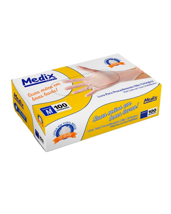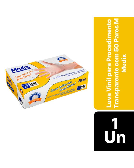 Luva Vinil P/procedimento S/po Transparente Cx C/50 Pares M Medix (ca 44562)