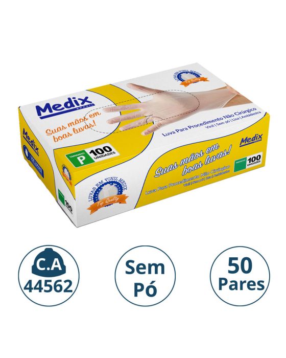 Luva Vinil P/ Procedimento S/po Transparente Cx C/50 Pares P Medix (ca 44562)