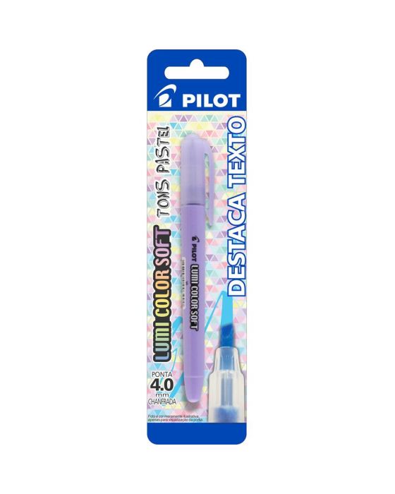 Características:Lançado no Brasil em 1975, o Lumi Color é uma das linhas mais tradicional da PILOT, nesta versão, desenvolvida com tinta de composição especial em lindos tons pastel, destaca-se pela suavidade e baixa saturação nas cores.Equipado com uma resistente ponta chanfrada de poliéster, o Lumi Color Soft possibilita a prática de lettering e caligrafias sem danificar a ponta. Além disso, oferece marcação em traço duplo, com opção fina para sublinhar e grossa para destacar, proporcionando total aderência em superfícies de papel.Detalhes:- Marca: Pilot;- Modelo: Lumicolor 200-sl Soft;- Referência: 1482005;- Linha: Marca Texto;- Cor: Violeta Pastel;- Ponta: Poliéster chanfrada 4,0 mm;- Contém: 1 Blister com uma unidade do produto;- Não recarregavel.Armazenagem:- Armazenar em locais ventilados, frescos, secos e cobertos;- Mantenha a embalagem do produto fechada longe de fontes de calor, ignição, crianças e alimentos.Composição:- Tintas à base de água, aditivos, corantes, resinas termoplásticas e ponta de poliéster (mistura).* As especificações podem ser alteradas sem aviso prévio ** Imagem meramente ilustrativa.