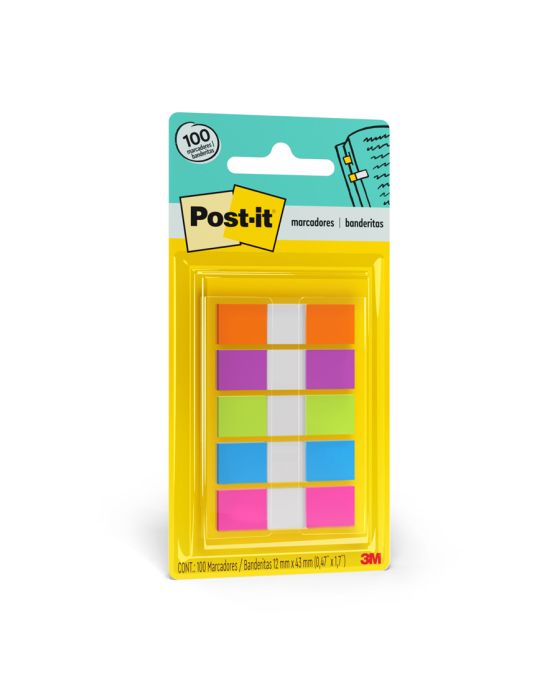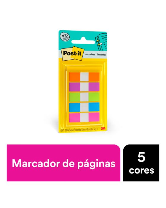 Características:Em um formato menor e diferenciado, os Marcadores Adesivos de Páginas Post-it® chamam a sua atenção para não se esquecer de compromissos e assuntos importantes. Possuem suporte com sistema puxa fácil, o que facilita o uso.Detalhes:- Marca: Post-it®;- Fabricante: 3M;- Modelo: Adesivo Post-it® Flags;- Referência: HB004354146;- Linha: Marcadores de página;- Cor: Azul, Amarelo, Pink, Roxo Verde Neon;- Quantidade de folhas: 100 folhas (20 em cada bloco);- Quantidade de blocos: 5 blocos;- Contém: 1 embalagem com 100 folhas;- Medidas: 11,9 x 43,2mm (1,19 x 4,32cm);- Facilitam a busca por informações, otimizando o seu tempo através da organização;- Reposicionáveis, podendo ser retirado sem danificar a página;- Fácil para marcar os pontos mais importantes da sua agenda, podendo dividir cadernos e fichários, pois aceita escrita;- Descubra rapidamente o que é importante;- Aceita Escrita.Aplicações sugeridas:- Ideais para destacar compromissos importantes, demarcar livros, encontrar artigos em revistas e organizar documentos e projetos, sem a necessidade de riscar ou marcar o papel.Composição:- Fabricado em papel com adesivo com base vegetal reposicionável.Conteúdo da embalagem: 1 Marcador De Pagina Adesivo Post-it Flags Neon 11,9 X 43,2 Mm 100 Folhas 3m.* As especificações podem ser alteradas sem aviso prévio ** Imagem meramente ilustrativa.