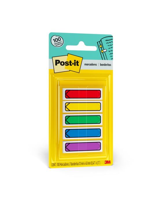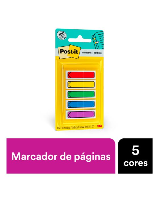 Características:Em um formato menor e diferenciado, os Marcadores Adesivos de Páginas Post-it® Formato de Seta chamam a sua atenção para não se esquecer de compromissos e assuntos importantes. Possuem suporte com sistema puxa fácil, o que facilita o uso.Detalhes:- Marca: Post-it®;- Fabricante: 3M;- Modelo: Adesivo Post-it® Flags Setas;- Referência: HB004352199;- Linha: Marcadores de página;- Cor: Verde, Amarelo, Azul, Vermelho e Roxo;- Quantidade de folhas: 400 folhas (20 em cada bloco);- Quantidade de blocos: 5 blocos;- Contém: 1 embalagem com 100 folhas;- Medidas: 11,9 x 43,2mm (1,19 x 4,32cm);- Cartela com dispensador;- Facilitam a busca por informações, otimizando o seu tempo através da organização;- Reposicionáveis, podendo ser retirado sem danificar a página;- Fácil para marcar os pontos mais importantes da sua agenda, podendo dividir cadernos e fichários, pois aceita escrita;- Descubra rapidamente o que é importante.Aplicações sugeridas:- Ideais para destacar compromissos importantes, demarcar livros, encontrar artigos em revistas e organizar documentos e projetos, sem a necessidade de riscar ou marcar o papel.Conteúdo da embalagem: 1 Marcador De Pagina Adesivo Post-it Flags Setas 11,9 X 43,2 Mm 100 Folhas 3m.* As especificações podem ser alteradas sem aviso prévio ** Imagem meramente ilustrativa.