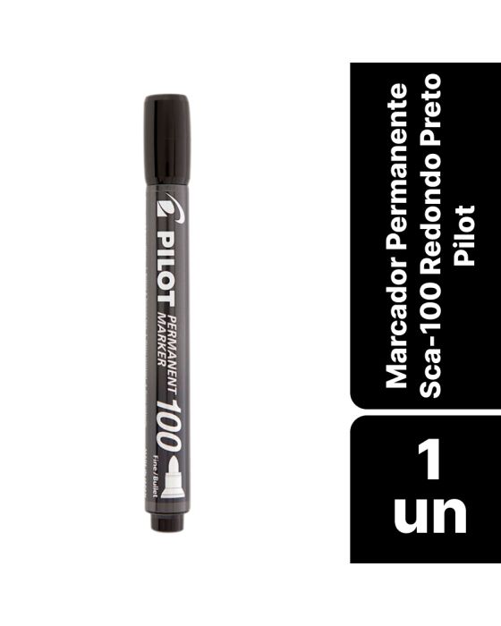 Características:O marcador Permanent Marker SCA 100 é eficiente, confortável e enfrenta qualquer desafio. Importado do Japão, conta com uma tecnologia que impede a tinta do produto de secar por até 24 horas mesmo quando destampado.Nesta versão SCA 100, o marcador é equipado com uma ponta redonda e tinta de alta qualidade. Além de possuir uma ponta super resistente, ela foi desenvolvida para evitar dispersões durante o uso, garantindo a vivacidade das cores.Além disso, sua tinta especial não desbota, formando uma película protetora que resguarda o produto contra ações climáticas, como sol e chuva. Este marcador é indicado para uso em diversas superfícies, como papéis, vidro, madeira, metal, papel cartão e plástico acrílico.Detalhes:- Marca: Pilot;- Modelo: Permanent Marker SCA 100;- Referência: 2450013;- Linha: Marcador Permanente;- Cor: Preto;- Ponta: Redonda 4,5mm;- Espessura de escrita: 1,00mm;- Contém: 1 unidade do produto;- Livre de xileno e tolueno;- Seca instantaneamente;- Para uso profissional/artístico;- Produto não recarregável.Ideal para: - Indicado para escrever ou marcar: papel, plástico, metal, vidro, madeira, papelão e outras superfícies.Observações:- Tomar cuidado com o vestuário;- Tampar após a utilização;- Utilizar o produto em um local ventilado longe de fontes de calor e ignição.Armazenagem:- Armazenar em locais ventilados, frescos, secos e cobertos;- Mantenha a embalagem do produto fechada longe de fontes de calor ignição, crianças e alimentos;- Manter o produto na posição horizontal.Composição:- Resinas termoplásticas, fibras de poliéster, tinta à base de álcool, corantes, resinas, solventes, aditivos e ponta de acrílico.ATENÇÃO! MANTENHA FORA DO ALCANCE DAS CRIANÇAS E DOS ANIMAIS DOMÉSTICOS.* As especificações podem ser alteradas sem aviso prévio ** Imagem meramente ilustrativa.