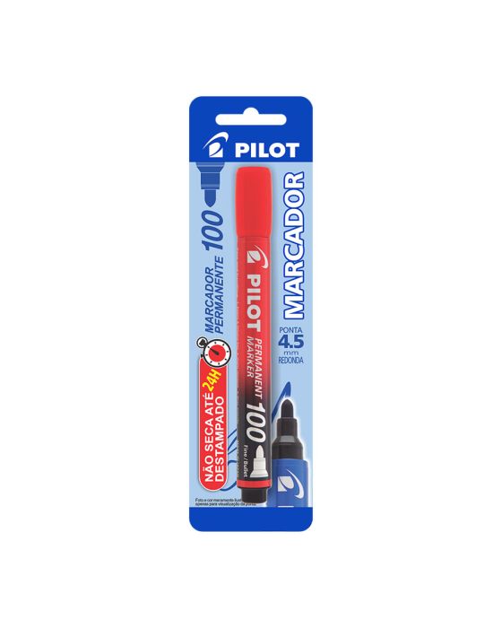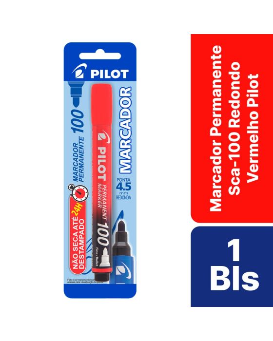 Características:O marcador Permanent Marker SCA 100 é eficiente, confortável e enfrenta qualquer desafio. Importado do Japão, conta com uma tecnologia que impede a tinta do produto de secar por até 24 horas mesmo quando destampado.Nesta versão SCA 100, o marcador é equipado com uma ponta redonda e tinta de alta qualidade. Além de possuir uma ponta super resistente, ela foi desenvolvida para evitar dispersões durante o uso, garantindo a vivacidade das cores.Além disso, sua tinta especial não desbota, formando uma película protetora que resguarda o produto contra ações climáticas, como sol e chuva. Este marcador é indicado para uso em diversas superfícies, como papéis, vidro, madeira, metal, papel cartão e plástico acrílico.Detalhes:- Marca: Pilot;- Modelo: Permanent Marker SCA 100;- Referência: 1481515;- Linha: Marcador Permanente;- Cor: Vermelha;- Ponta: Redonda 4,5mm;- Espessura de escrita: 1,00mm;- Contém: 1 Blister com uma unidade do produto;- Livre de xileno e tolueno;- Seca instantaneamente;- Para uso profissional/artístico;- Produto não recarregável.Ideal para: - Indicado para escrever ou marcar: papel, plástico, metal, vidro, madeira, papelão e outras superfícies.Observações:- Tomar cuidado com o vestuário;- Tampar após a utilização;- Utilizar o produto em um local ventilado longe de fontes de calor e ignição.Armazenagem:- Armazenar em locais ventilados, frescos, secos e cobertos;- Mantenha a embalagem do produto fechada longe de fontes de calor ignição, crianças e alimentos;- Manter o produto na posição horizontal.Composição:- Resinas termoplásticas, fibras de poliéster, tinta à base de álcool, corantes, resinas, solventes, aditivos e ponta de acrílico.ATENÇÃO! MANTENHA FORA DO ALCANCE DAS CRIANÇAS E DOS ANIMAIS DOMÉSTICOS.* As especificações podem ser alteradas sem aviso prévio ** Imagem meramente ilustrativa.