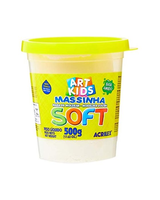 Caracteristicas: - Desenvolvida para uso escolar ou entretenimento- Ideal para atividades de desenvolvimento da coordenação motora e percepção de formas, também é ótima para quem gosta de usar sua criatividade artesanal- À base de amido, não tóxica, super macia, com aroma de tutti-frutti e cores vivas e brilhantes, desperta o interesse das crianças para criativas atividades- Com a Massinha de Modelar Soft Acrilex, você pode guardar as esculturas que você quiser, é só deixar a massa secar durante 5 dias. Após seca, pode ser pintada com Guache Acrilex- Embalagem com 500 gramas* As especificações podem ser alteradas sem aviso prévio ** Imagem meramente ilustrativa