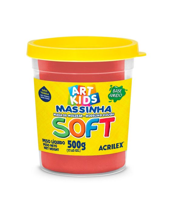 Características:Foi desenvolvida para uso escolar ou entretenimento. Ideal para atividades de desenvolvimento da coordenação motora e percepção de formas. Também é ótima para quem gosta de usar sua criatividade em trabalhos artesanais.Detalhes: - Marca: Acrilex.- Modelo: Massinha Soft.- Referência: 103.- Linha: Massa de modelar.- Cor: Vermelho.- Aroma: Tutti-Frutti.- Contém: 1 unidade do produto.- Peso: 500g.- Não Tóxica.- À base de amido.- Super macia.- Cores vivas e brilhantes.Uso: - Desenvolvida para uso escolar ou entretenimento.Ideal para: - Ideal para atividades de desenvolvimento da coordenação motora e percepção de formas, também é ótima para quem gosta de usar sua criatividade artesanal.Outros:- Você pode guardar as esculturas que você quiser, é só deixar a massa secar durante 5 dias. Após seca, pode ser pintada com Guache Acrilex.Composição:- Água, Carboidratos de Cereais, Glúten, Cloreto de Sódio, Conservante, Aroma, Aditivos e Pigmentos.* As especificações podem ser alteradas sem aviso prévio ** Imagem meramente ilustrativa.