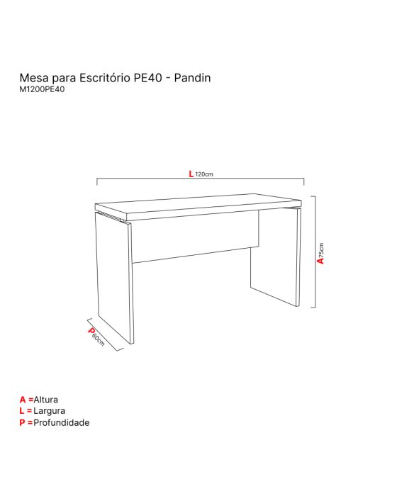 Características:Linha PE40 TUB Pandin é uma linha com design clássico e sofisticado, que une beleza, funcionalidade e estilo com o melhor custo benefício do mercado. Com pés tubolares em aço que dão um toque de modernidade e estilo ao ambiente!Detalhes:- Marca: Pandin.- Modelo: M1200PE40.- Linha: Mesa para escritório.- Cor: Walnut/Preto.Medidas:- Largura: 120cm- Altura: 75cm- Profundidade: 60cmAcabamento:- Acabamento em fita em PVC (Poliestireno) com 1mm espessura com bordas aparentes encabeçadas.- Processo com rigoroso controle de qualidade analisado por um laboratório certificado pelo INMETRO atendendo as normas da NBR 8094:1983 Material metálico revestido e não revestido a corrosão por exposição a Nevoa Salina, onde é feito ensaio de corrosão acelerada com névoa salina por 500hrs, devendo o grau de corrosão determinado conforme a ISO 4628-3, não devendo ser maior que Ri 1,conforme item 4.3.1 da norma ABNT 13961:2010.- Tampo da Mesa : Tampos encabeçados de 40mm composto na parte superior em MDP BP (15mm) e inferior por acabamentos moldurados de 70mm em MDP25mm- Pintura eletrostática controlada por Reciprocador, tornando à aplicação uniforme.Estrutura:- Tampo da mesa: Tampos encabeçados de 40mm composto na parte superior em MDP BP (15mm).- Retagaurda da Mesa: Confeccionado em MDP BP (15mm) e inferior por acabamentos moldurados de 70mm em MDP25mm.- Confeccionado em MDP BP (25mm), com 2 espaçadores injetados em poliestireno, ponteira tipo Octogonal com espessura de (5mm)de poliestireno que permite aregulagem quando há desnível do piso.*Produto Vendido DesmontadoManual em vídeo para montagem: https://www.youtube.com/watch?v=o2eEr-Nn0e8*As especificações podem ser alteradas sem aviso prévio ** Imagem meramente ilustrativa.