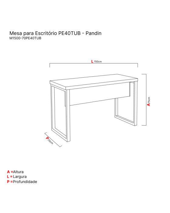 Características:Linha PE40 TUB Pandin é uma linha com design clássico e sofisticado, que une beleza, funcionalidade e estilo com o melhor custo benefício do mercado. Com pés tubolares em aço que dão um toque de modernidade e estilo ao ambiente!Detalhes:- Marca: Pandin.- Modelo: M150070PE40TUB.- Linha: Mesa para escritório.- Cor: Walnut/Preto.Medidas:- Largura: 150cm- Altura: 75cm- Profundidade: 70cmAcabamento:- Acabamento em fita em PVC (Poliestireno) com 1mm espessura com bordas aparentes encabeçadas.- Processo com rigoroso controle de qualidade analisado por um laboratório certificado pelo INMETRO atendendo as normas da NBR 8094:1983 Material metálico revestido e não revestido a corrosão por exposição a Nevoa Salina, onde é feito ensaio de corrosão acelerada com névoa salina por 500hrs, devendo o grau de corrosão determinado conforme a ISO 4628-3, não devendo ser maior que Ri 1,conforme item 4.3.1 da norma ABNT 13961:2010.- Pintura eletrostática controlada por Reciprocador, tornando à aplicação uniforme.Estrutura:- Tampo da mesa: Tampos encabeçados de 40mm composto na parte superior em MDP BP (15mm).- Retagaurda da Mesa: Confeccionado em MDP BP (15mm) e inferior por acabamentos moldurados de 70mm em MDP25mm.- Confeccionado em MDP BP (25mm), com 2 espaçadores injetados em poliestireno, ponteira tipo Octogonal com espessura de (5mm)de poliestireno que permite aregulagem quando há desnível do piso.*Produto Vendido DesmontadoManual em vídeo para montagem: https://www.youtube.com/watch?v=o2eEr-Nn0e8*As especificações podem ser alteradas sem aviso prévio ** Imagem meramente ilustrativa.