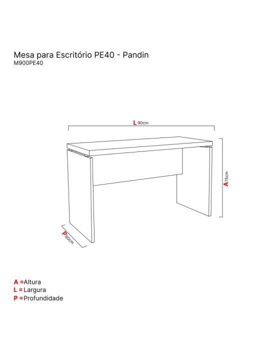 Características:Linha PE40 Pandin é uma linha com design clássico e sofisticado, que une beleza, funcionalidade e estilo com o melhor custo benefício do mercado!Detalhes:- Marca: Pandin.- Modelo: M900PE40.- Linha: Mesa para escritório.- Cor: Walnut/Preto.Medidas:- Largura: 90cm- Altura: 75cm- Profundidade: 60cmAcabamento:- Acabamento em fita em PVC (Poliestireno) com 1mm espessura com bordas aparentes encabeçadas.- Processo com rigoroso controle de qualidade analisado por um laboratório certificado pelo INMETRO atendendo as normas da NBR 8094:1983 Material metálico revestido e não revestido a corrosão por exposição a Nevoa Salina, onde é feito ensaio de corrosão acelerada com névoa salina por 500hrs, devendo o grau de corrosão determinado conforme a ISO 4628-3, não devendo ser maior que Ri 1,conforme item 4.3.1 da norma ABNT 13961:2010.- Pintura eletrostática controlada por Reciprocador, tornando à aplicação uniforme.Estrutura:- Tampo da mesa: Tampos encabeçados de 40mm composto na parte superior em MDP BP (15mm).- Retagaurda da Mesa: Confeccionado em MDP BP (15mm) e inferior por acabamentos moldurados de 70mm em MDP25mm.- Confeccionado em MDP BP (25mm), com 2 espaçadores injetados em poliestireno, ponteira tipo Octogonal com espessura de (5mm)de poliestireno que permite aregulagem quando há desnível do piso.*Produto Vendido DesmontadoManual em vídeo para montagem: https://www.youtube.com/watch?v=o2eEr-Nn0e8*As especificações podem ser alteradas sem aviso prévio ** Imagem meramente ilustrativa.