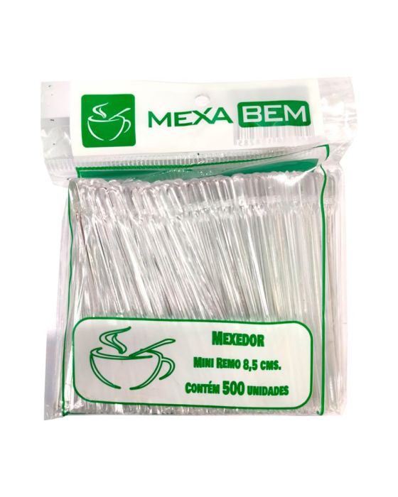 Características:O mexedor Mexa Bem é a opção ideal para quem adora aquele cafezinho em qualquer momento do dia, fabricado em poliestireno cristal, é um produto ideal para escritórios, copas, salas de reunião, restaurantes, lanchonetes e padarias.Detalhes: - Marca: Mexa Bem;- Modelo: Mini Remo;- Linha: Mexedor; - Cor: Transparente;- Para: Café;- Tamanho: 8,5cm;- Quantidade: 500 unidades;- Contém: 1 unidade com 500 unidades;- Qualidade e Confiança.Indústria Brasileira | Validade Indeterminada.Ideal para:- Ideal para uso em escritórios, salas de reuniões, copa, restaurantes, lanchonetes, cafeterias e demais ambientes.Composição:- Poliestireno cristal e pigmentos atóxicos Medidas:- Dimensões: 8,7 x 3 x 13,5cm (CxLxA)MANTENHA FORA DO ALCANCE DAS CRIANÇAS.* As especificações podem ser alteradas sem aviso prévio** Imagem meramente ilustrativa.