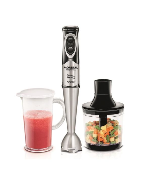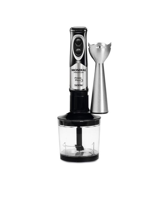 Caracteristicas:As suas receitas favoritas preparadas de forma prática e eficiente com o Power Mixer Premium M-07 da Mondial. O aparelho é 2 em 1: mixer e processador de alimentos. Aproveite a eficiência dos seus 500W de potência e suas 2 lâminas em aço inox que, além de garantir mais durabilidade ao produto, possibilitam que você processe alimentos mais resistentes e prepare diversos tipos de receitas com muito mais rapidez e praticidade. O seu corpo é anatômico e desmontável o que facilita - e muito - a limpeza. O mixer da Mondial tem 2 velocidades, conta com um acionamento fácil de liga-desliga e um copo com capacidade de 800ml com tampa para você armazenar o alimento e não desperdiçar nada.Especificações técnicas- Velocidades: 2- Capacidade: 800ml- Tipo de lâmina: Lâmina de aço inox- Desmontável: Sim- Botão turbo: Sim- Botão liga-desliga: Sim- Voltagem: 220V- Potência: 500W- Comprimento do cabo: 1,5m- Cor: Preto/Inox- Dimensões (AxLxP): 24,5 x 14,5 x 21,8cm- Peso: 1,2kg- Itens inclusos: 1 mixer, manual de instruções- Garantia: 1 ano* As especificações podem ser alteradas sem aviso prévio ** Imagem meramente ilustrativa.