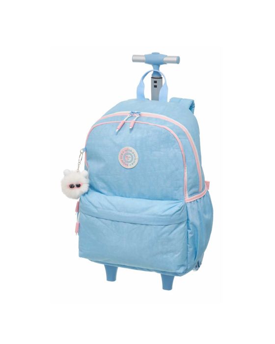 Características:A Mochila Carrinho Pack Me Life Pacific é a escolha ideal para quem busca estilo, conforto e funcionalidade no dia a dia. Com o modelo Life, ela combina um design moderno com uma estrutura prática e resistente, perfeita para quem precisa de espaço e organização, além de possuir um chaveiro em formato de pompom super fofo que possui até um óculos super estiloso e orelhinhas!Conta com uma capacidade de aproximadamente 30 litros, essa mochila oferece espaço suficiente para carregar seus livros, cadernos e materiais de trabalho. As alças acolchoadas garantem o máximo de conforto, enquanto o puxador personalizado em cinza com detalhes em rosa e o chaveiro de pompom conferem um toque especial ao design. A e sua alça retrátil possui dois níveis, podendo chegar até 96,2cm de altura!!Ideal para quem procura praticidade sem abrir mão da elegância, a Mochila Carrinho Pack Me Life Azul Pacific é a escolha perfeita para acompanhar sua rotina com estilo e funcionalidade. Detalhes:- Marca: Pacific;- Modelo: Pack Me Life;- Referência: 7980576M;- Linha: Mochilas;- Tipo: Carrinho;- Cor: Azul claro com detalhes rosa e branco;- Cor do forro: Azul claro;- Quantidade de bolsos: 5 bolsos;- Capacidade: Aproximadamente 30 litros;- Contém: 1 unidade do produto;- Fechamento: Zíper;- Alça retrátil com botão e 2 níveis de altura;- Alças reforçadas e acolchoadas;- Possui alça de transporte para as mãos;- Conta com velcro para prender a fita da alça, impedindo que fique arrastando pelo chão enquanto utiliza a mochila como carrinho;- Possui compartimento para prender as alças quando não forem utilizadas;- Acompanha chaveiro em formato de pompom na cor branca com um óculos rosa e com orelhinhas;- Puxadores dos zíperes personalizados na cor branca com detalhes em rosa;- Produto original e licenciado.Fabricado na China | Validade: Indeterminada.Bolsos:- 2 bolsos principais superiores;- 1 bolso médio frontal- 2 bolsos laterais.Composição:- Material mochila: 80% Nylon e 20% PVC;- Forro: 100% Poliéster.Recomendações:- Evite carga excessiva de objetos para assim manter as ótimas condições de uso e durabilidade da mochila;- Limpar com pano seco ou levemente umedecido;- Não lavar, não alvejar, não secar em tambor, não passar e não lavar a seco;- Teme químicos e abrasivos;- Não deixar de molho.Medidas:- Dimensões do produto com a alça retrátil aberta nível médio: 72,7 x 25,5 x 23,5cm (AxCxP);- Dimensões do produto com a alça retrátil aberta nível máximo: 96,2 x 25,5 x 23,5cm (AxCxP);- Dimensões do produto com a alça retrátil fechada: 52,3 x 25,5 x 23,5cm (AxCxP);- Peso: 1.485kg.Garantia do fornecedor: 3 Meses contra defeitos de fabricação.* As especificações podem ser alteradas sem aviso prévio ** Imagem meramente ilustrativa.