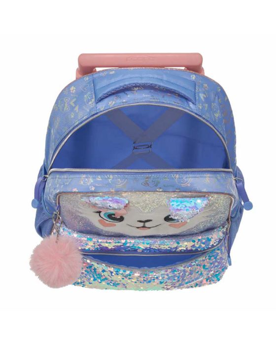 Características:A Mochila Carrinho Pacific Pack Me Husky é a combinação perfeita de estilo, praticidade e conforto. Ideal para crianças e adolescentes, ela oferece um design moderno e encantador, com cores vibrantes e recursos pensados para facilitar o dia a dia. Seja para a escola, passeios ou viagens, essa mochila carrinho é a escolha certa para quem não abre mão de qualidade e praticidade.Com aproximadamente 18 litros de capacidade, a mochila carrinho Pack Me Husky oferece amplo espaço para livros, cadernos, lanche e outros itens essenciais, tudo de forma organizada e acessível. Detalhes:- Marca: Pacific;- Modelo: Pack Me Husky;- Referência: 998BF01;- Linha: Mochilas;- Tipo: Carrinho;- Cor: Lilás com detalhes metalizados e rosa;- Cor do forro: Lilás;- Quantidade de bolsos: 4 bolsos;- Capacidade: Aproximadamente 18 litros;- Contém: 1 unidade do produto;- Fechamento: Zíper;- Alças retrátil com duas possíveis alturas;- Acompanha chaveiro/pompom na cor rosa;- Bolso médio frontal com lantejoulas que mudam de cor conforme desliza a mão sobre elas;- Contém na parte interna presilhas para evitar que os materiais fiquem soltos;- Rodinhas macias;- Puxadores dos zíperes em tecido na cor lilás;- Produto original e licenciado.Fabricado na China | Validade: Indeterminada.Bolsos:- 1 bolso principal superior;- 1 bolso médio frontal- 2 bolsos laterais telados.Composição:- Material mochila: 61% Poliéster, 39% PVC e metal;- Forro: 100% Poliéster.Recomendações:- Evite carga excessiva de objetos para assim manter as ótimas condições de uso e durabilidade da mochila;- Limpar com pano seco ou levemente umedecido;- Não lavar, não alvejar, não secar em tambor, não passar e não lavar a seco;- Teme químicos e abrasivos;- Não deixar de molho.Medidas:- Dimensões do produto com a alça retrátil aberta: 80,2 x 29 x 13,32cm (AxCxP);- Dimensões do produto: 40,2 x 29 x 13,2cm (AxCxP);- Peso: 1.060kg.Garantia do fornecedor: 3 Meses contra defeitos de fabricação.* As especificações podem ser alteradas sem aviso prévio ** Imagem meramente ilustrativa.