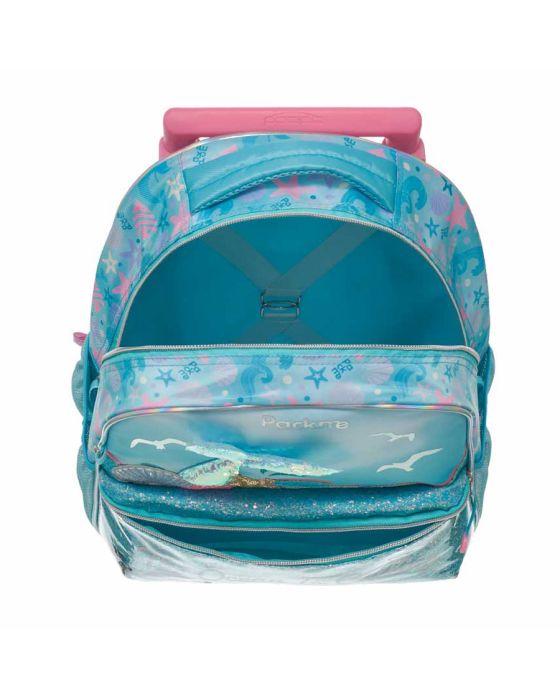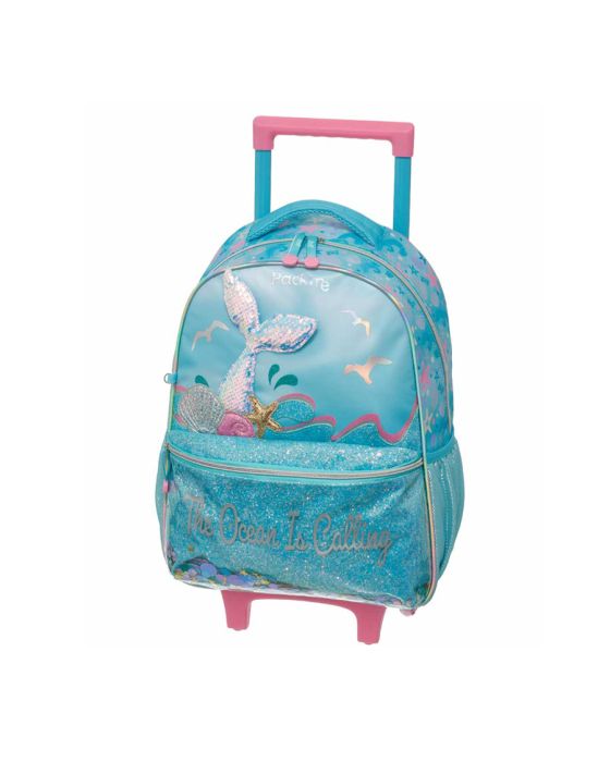 Características:A Mochila Escolar Pack Me Ocean Pacific transformará a ia a escola em uma caminhada ao oceano, sim, isso será possível!! Possui bolso frontal com lantejoulas coloridas que se mexem conforme a mochila balança e com o barulho das lantejoulas, você se sentirá na praia! São aproximadamente 20 litros distribuído em 4 bolsos bem espaçosos para que você consiga organizar os seus itens do dia a dia escolar de forma prática, objetiva e organizada! Detalhes:- Marca: Pacific;- Modelo: Pack Me Ocean;- Referência: 998GB01;- Linha: Mochilas;- Tipo: Carrinho;- Cor: Azul Piscina com detalhes metalizados, rosa, verde e amarelo;- Quantidade de bolsos: 4 bolsos;- Capacidade: Aproximadamente 20 litros;- Contém: 1 unidade do produto;- Fechamento: Zíper;- Alças retrátil com duas possíveis alturas;- Rodinhas macias;- Acompanha chaveiro em lantejoula cem formato de concha na cor verde água;- Possui lantejoulas coloridas no bolso frontal que se mexem conforme o movimento da mochila simbolizando o oceano;- Bolso médio frontal com glitter no fundo;- Cauda de sereia para simbolizar o personagem fabricado em lantejoula;- Contém na parte interna presilhas para evitar que os materiais fiquem soltos;- Zíperes em tecido na cor e azul Piscina e rosa;- Produto original e licenciado.Fabricado na China | Validade: Indeterminada.Bolsos:- 1 bolso principal superior;- 1 bolso médio frontal- 2 bolsos laterais telados.Composição:- Material mochila: 61% Poliéster, 39% PVC e metal;- Forro: 100% Poliéster.Recomendações:- Evite carga excessiva de objetos para assim manter as ótimas condições de uso e durabilidade da mochila;- Limpar com pano seco ou levemente umedecido;- Não lavar, não alvejar, não secar em tambor, não passar e não lavar a seco;- Teme químicos e abrasivos;- Não deixar de molho.Medidas:- Dimensões do produto com a alça retrátil aberta: 78 x 28 x 14,5cm (AxCxP);- Dimensões do produto: 40,3 x 28 x 14,5 cm (AxCxP);- Peso: 1.095kg.Garantia do fornecedor: 3 Meses contra defeitos de fabricação.* As especificações podem ser alteradas sem aviso prévio ** Imagem meramente ilustrativa.