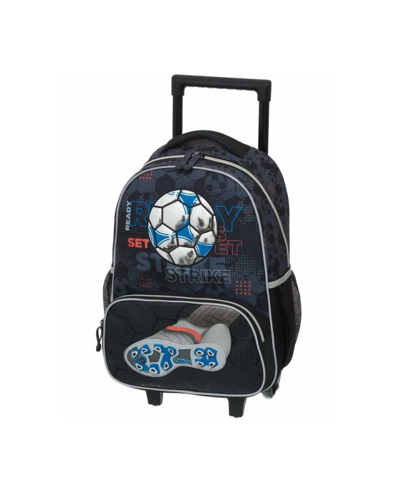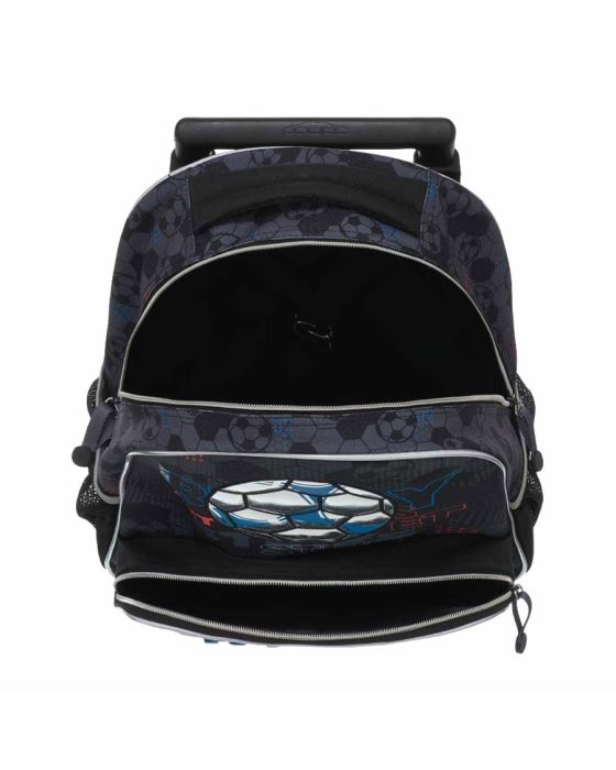Características:A Mochila Carrinho Pacific Pack Me Strike é a escolha ideal para quem busca praticidade, estilo e qualidade. Com um design moderno inspirado no universo do futebol, ela oferece um visual vibrante e esportivo, perfeito para os amantes desse esporte, sabe o que a torna mais legal? Seus bolsos personalizados contam com uma chuteira com detalhes em 3D e uma bola de futebol com detalhes metalizados, bacana para a criançada!Com uma capacidade de aproximadamente 18 litros, a Mochila Carrinho Pacific Pack Me Strike oferece o espaço ideal para carregar tudo o que você precisa de forma prática e acessível, além de possuir uma presilha para prender seus livros e cadernos o que facilita ainda mais seguros sem que fiquem se mexendo sem parar. Detalhes:- Marca: Pacific;- Modelo: Pack Me Strike;- Referência: 998BH01;- Linha: Mochilas;- Tipo: Carrinho;- Cor: Preto com detalhes metalizados, cinza, azul e vermelho;- Cor do forro: Preto;- Quantidade de bolsos: 4 bolsos;- Capacidade: Aproximadamente 18 litros;- Contém: 1 unidade do produto;- Fechamento: Zíper;- Alças retrátil com duas possíveis alturas;- Bolso médio frontal com uma chuteira com detalhes em 3D;- Bolso superior grande com uma bola de futebol com detalhes metalizados;- Rodinhas macias;- Contém na parte interna presilhas para evitar que os materiais fiquem soltos;- Puxadores dos zíperes em tecido na cor cinza e detalhes em preto;- Produto original e licenciado.Fabricado na China | Validade: Indeterminada.Bolsos:- 1 bolso principal superior;- 1 bolso médio frontal- 2 bolsos laterais telados.Composição:- Material mochila: 84% Poliéster, 16% PVC e metal;- Forro: 100% Poliéster.Recomendações:- Evite carga excessiva de objetos para assim manter as ótimas condições de uso e durabilidade da mochila;- Limpar com pano seco ou levemente umedecido;- Não lavar, não alvejar, não secar em tambor, não passar e não lavar a seco;- Teme químicos e abrasivos;- Não deixar de molho.Medidas:- Dimensões do produto com a alça retrátil aberta: 80 x 28,3 x 15cm (AxCxP);- Dimensões do produto com alça fechada: 40,2 x 28,3 x 15cm (AxCxP);- Peso: 1.096kg.Garantia do fornecedor: 3 Meses contra defeitos de fabricação.* As especificações podem ser alteradas sem aviso prévio ** Imagem meramente ilustrativa.