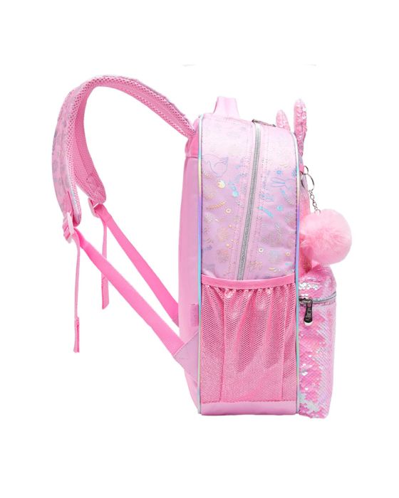 Características:A Mochila Costas Pack Me Bunny Pacific é confeccionada em sarja fina de poliéster, possui carinha de coelhinho em patch bordado de veludo , orelhas 3D e bolso frontal em paetê Mágico irisado, sendo moderna, interativa e brilhante, ainda possui alças reguláveis para carregar nas costas e também a alça de mão para facilitar o seu transporte. Possui bolsos laterais para garrafinhas ou guarda chuva, sendo super versátil podendo carregar o que for necessário, e possuindo zíper em metal, com resistência e delicadeza que só a linha Pack Me pode oferecer.Ah, possuí um detalhe de chaveiro de pompom na parte frontal, super fofo!Detalhes:- Marca: Pacific;- Modelo: Pack Me Cute;- Referência: 998AE04;- Linha: Estojos Escolares;- Cor: Rosa;- Tamanho: Único;- Quantidade de bolso: 2 bolsos;- Contém: 1 unidade do produto;- Fechamento: Zíper na cor dourada;- Acompanha: 1 Chaveiro pompom;- Bolso com lantejoulas;- Amplos compartimentos;- Oferece durabilidade e resitência.Bolsos:- 1 Bolso principal superior;- 1 Bolso pequeno frontal.Composição:- Lancheira: Fabricado em 61% Poliéster Body Material e 39% PVC Body Material;- Forro: Fabricado em 100% PVC Lining Material;Medidas:- Dimensões do produto: 39 x 30 x 12cm (AxLxP).- Peso: 445g.Conteúdo da embalagem: 1 Mochila Costas Pack Me Fox Rosa 998AE04 Pacific.Garantia do fornecedor: 90 dias contra defeitos de fabricação contados a partir da data de aquisição.ATENÇÃO! NÃO RECOMENDÁVEL PARA CRIANÇAS MENORES DE 3 (TRÊS) ANOS POR CONTER PARTE(S) PEQUENA(S) QUE PODE(M) SER ENGOLIDA(S) OU ASPIRADA(S).* As especificações podem ser alteradas sem aviso prévio ** Imagem meramente ilustrativa.
