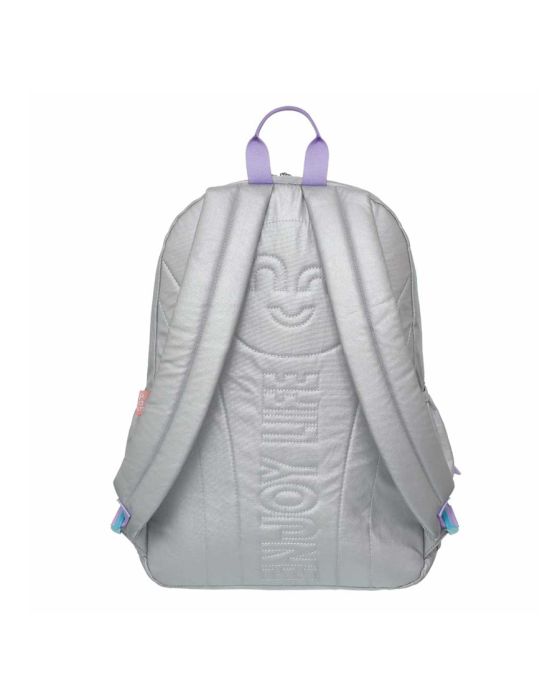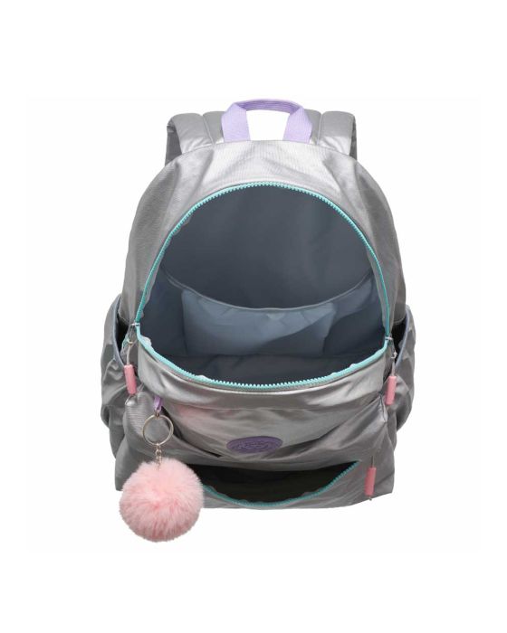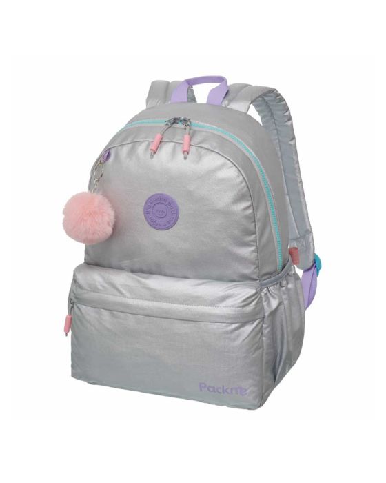 Características:A Mochila Costas Pack Me Enjoy Prata Pacific é a combinação perfeita de estilo, praticidade e conforto para quem busca um modelo funcional e moderno. Com seu design sofisticado em prata, ela é ideal para o dia a dia, seja para a escola, trabalho ou viagens curtas.Conta com uma capacidade de 22 litros, essa mochila oferece espaço suficiente para carregar seus livros, cadernos, materiais de trabalho e até mesmo um notebook de até 17 polegadas. As alças acolchoadas garantem o máximo de conforto, enquanto o puxador personalizado em cinza e rosa e o chaveiro de pompom rosa conferem um toque especial ao design.Ideal para quem procura praticidade sem abrir mão da elegância, a Mochila Costas Pack Me Enjoy Prata Pacific é a escolha perfeita para acompanhar sua rotina com estilo e funcionalidade. Detalhes:- Marca: Pacific;- Modelo: Pack Me Enjoy;- Referência: 7981004F;- Linha: Mochilas;- Tipo: Costas;- Cor: Prata com detalhes em lilás e verde;- Cor do forro: Cinza;- Quantidade de bolsos: 4 bolsos;- Compartimento para notebook: Até 17 polegadas;- Capacidade: Aproximadamente 22 litros;- Contém: 1 unidade do produto;- Fechamento: Zíper;- Alças reforçadas e acolchoadas;- Possui alça de transporte;- Acompanha chaveiro em formato de pompom na cor rosa;- Puxadores dos zíperes personalizados na cor cinza e rosa;- Produto original e licenciado.Fabricado na China | Validade: Indeterminada.Bolsos:- 1 bolso principal superior;- 1 bolso médio frontal- 2 bolsos laterais.Composição:- Material mochila: 100% Nylon;- Forro: 100% Poliéster.Recomendações:- Evite carga excessiva de objetos para assim manter as ótimas condições de uso e durabilidade da mochila;- Limpar com pano seco ou levemente umedecido;- Não lavar, não alvejar, não secar em tambor, não passar e não lavar a seco;- Teme químicos e abrasivos;- Não deixar de molho.Medidas:- Dimensões do produto: 42,3 x 29 x 18cm (AxCxP);- Peso: 368g.Garantia do fornecedor: 3 Meses contra defeitos de fabricação.* As especificações podem ser alteradas sem aviso prévio ** Imagem meramente ilustrativa.