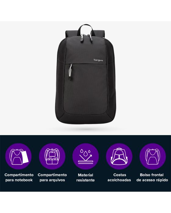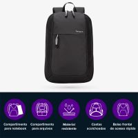 Características:VersatilidadeA Targus Intellect Essentials foi feita para acompanhar você em qualquer situação. Com vários compartimentos internos, seu design prioriza o conforto e a praticidade.Compartimento exclusivo para notebookO espaço para notebooks de até 15.6” é amplo, acolchoado e possui abertura lateral. Tudo isso para manter seu equipamento bem protegido, com fácil acesso.ResistênciaFeita em poliéster e resistente à água, a Mochila Targus Intellect Essentials foi projetada para durar.Costas e alças de ombros acolchoadasA Mochila Targus Geolite Essentials oferece mais conforto com seu painel traseiro e alças ajustáveis.Design compacto e eleganteFeita para acompanhar você em qualquer situação.PraticidadeLave com facilidade a Mochila Targus Geolite Essentials sempre que precisar.Muito mais espaçosCom bolso frontal, você mantém os seus itens organizados e de fácil acesso. Além disso, ela oferece um compartimento secundário para carregar o que você precisar.Detalhes:- Marca: Targus;- Modelo: Intellect Essentials;- Referência: TSB966;- Linha: Mochilas executivas;- Cor: Preto;- Capacidade: 16L;- Compartimento para notebook até: 15,6- Contém: 1 unidade do produto;- Possui compartimentos para acessórios;- Costas: Aeradas e Acolchoadas;- Bolso frontal de acesso rápido;- Painel traseiro de malha de ar para maior conforto;- Produto resistente à água.Composição:- Fabricado em Poliéster.Medidas:- Dimensões do produto: 42,47 x 30,96 x 14,5cm (CxLxA);- Peso: 350g.Garantia do fornecedor: Garantia Vitálicia.* As especificações podem ser alteradas sem aviso prévio ** Imagem meramente ilustrativa.