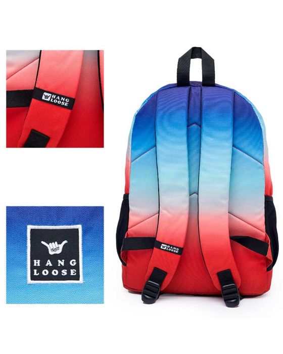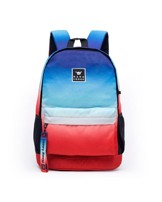 Caracteristicas:A mochila Hang Loose é grande e espaçosa, ideal para carregar materiais escolares como livros, apostilas, e pastas e até notebook.Detalhes:- Marca: Hang Loose- Modelo: Escolar - Cor: Colorido- Ziper preto- Material: 100% Poliéster- Medidas: 45 x 31 x 13cm (AxLxP)- Capacidade: 18,5L- Compartimento: Notebook até 15,6”Conta com:- Alça superior simples preta- Alças ergonômicas e reguláveis- Alças acolchoadas- Costas acolchoadas- 2 Bolsos frontais- 2 Bolsos laterais telado com elástico para garrafinha de água.- Compartimento para notebook- Puxador de metal com a logo Hang Loose e com tecido e ziper reforçado- Forro personalizado- Chaveiro Hang LooseCUIDADOS!- Evite carregar excesso de peso- Embalar objetos com cantos vivos cortantes- Para limpeza, utilize apenas pano úmido ou esponja macia e sabão neutro- Não expor a luz do sol para secar- Não utilizar nenhum produto químico para limpeza- Conservar em local seco e arejado.* As especificações podem ser alteradas sem aviso prévio ** Imagem meramente ilustrativa