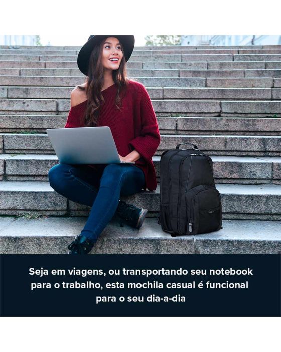 Caracteristicas:Seja em viagens ou transportando seu notebook para o trabalho, esta mochila casual é funcional para o seu dia-a-dia.- Bolso extra para arquivos e acessórios- Compartimento acolchoado para notebook de até 17- Espaço de compartimento para quem deseja flexibilidade- Bolso de acesso rápido para celular- Fundo de PVC protegendo contra água, impactos e arranhões- Cor: Preto- Dimensões (AxCxL): 50 x 38 x 18cm- Peso: 700g- Garantia: vitalícia contra defeitos de fabricação* As especificações podem ser alteradas sem aviso prévio ** Imagem meramente ilustrativa.